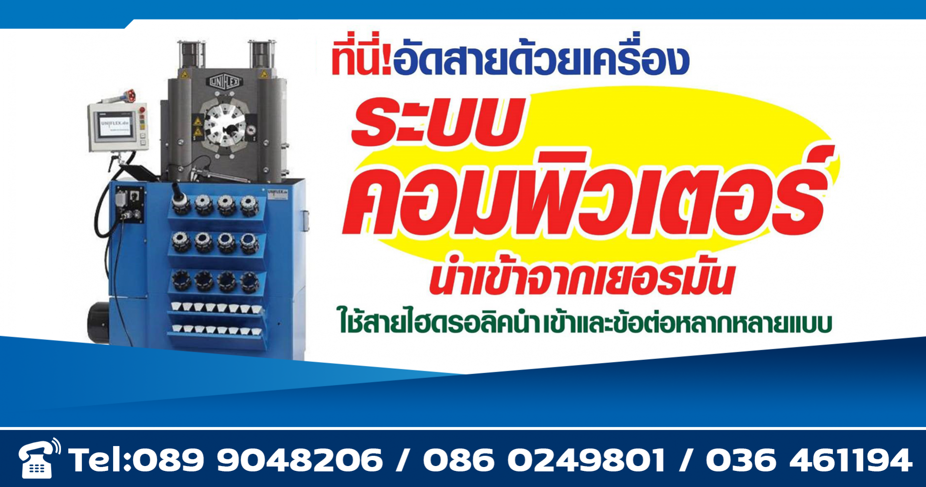 เครื่องอัดสายไฮดรอลิคนำเข้าจากประเทศเยอรมัน ช่างประสบการณ์มากกว่า 15 ปี มีความชำนาญ รับประกันสินค้าหลังการขาย